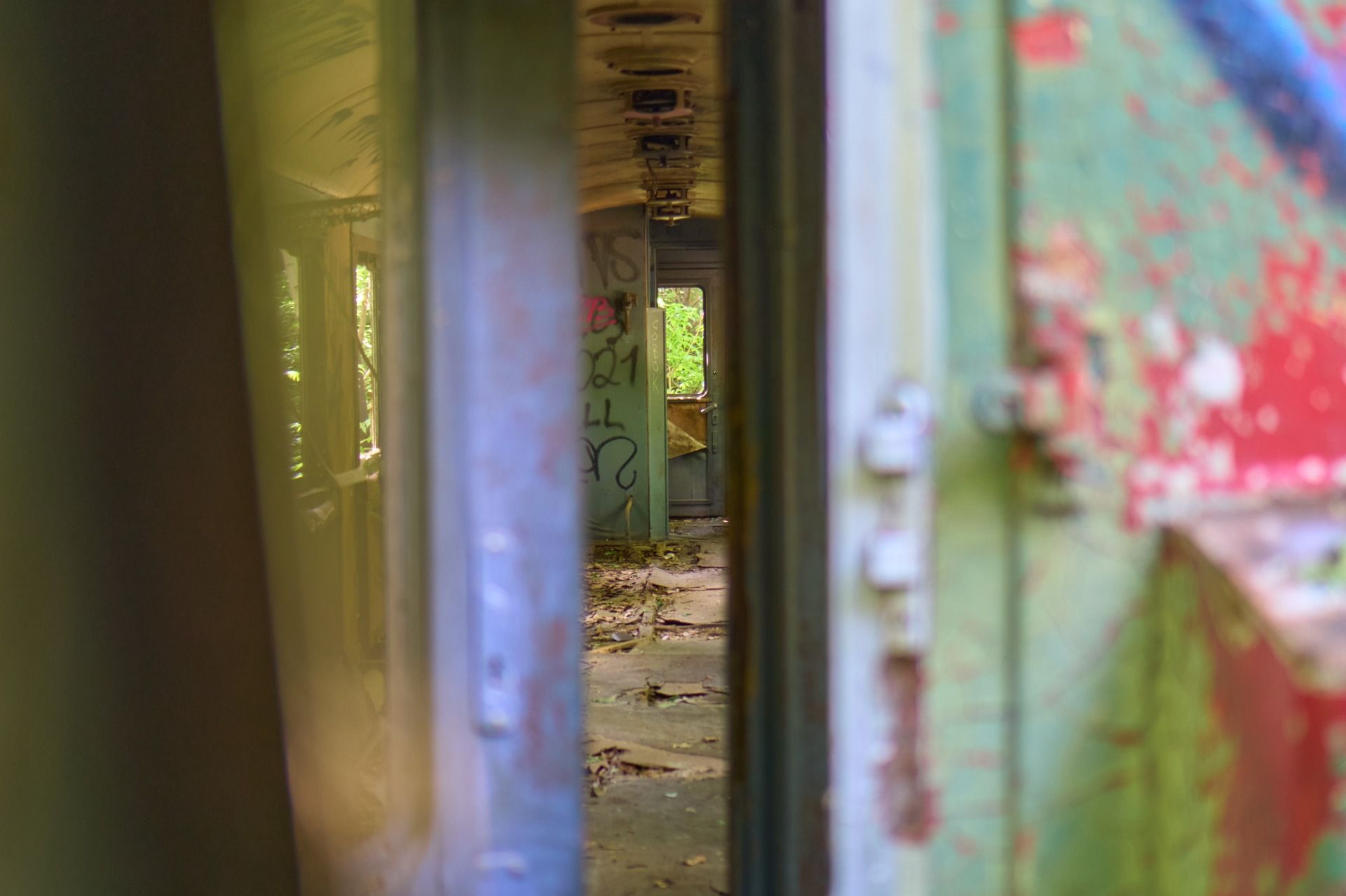 From the main building, you overlook the few trains that remain in the space. They're left still. Nothing protecting them. Nothing to stop you from merely boarding them and having a bit of fun, and that's generally the main appeal of the place to this day, oddly with many families still attending it and letting their children roam around the rusted trains; only one is closed off with a lock, and annoying it appears to be the most interesting one. The rest are free for you to have your fun with, and it makes for quite a fun space for a photoshoot! I was surprised at how some of these trains had survived over the years, not crumbling with their wooden frames. Some look as if all they need is a little bit of care to be up and running again, others have had their interiors completely removed, floor rotten, frames exposed.